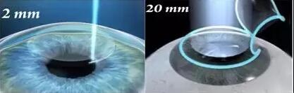 飞秒激光手术需要制作一个角膜瓣,并掀开角膜瓣对角膜基质层进行消融。因此飞秒激光的制作的角膜边缘切口有大约20mm的切口。