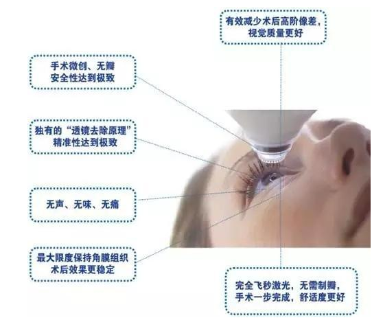 近视眼激光手术应用的激光波长很短,组织穿透力很弱,不会对眼内其他组织产生损伤作用。也就是说,激光手术对眼球内部组织不会有任何不良副作用,不会出现“近视打眼打瞎了”等骇人听闻的现象,更不会在治疗若干年后出现后遗症。