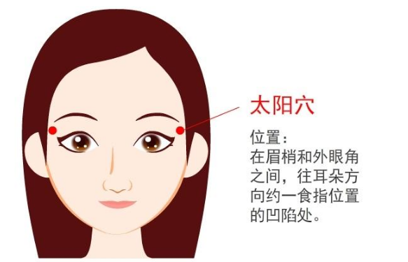 四、按揉太阳穴,刮上眼眶